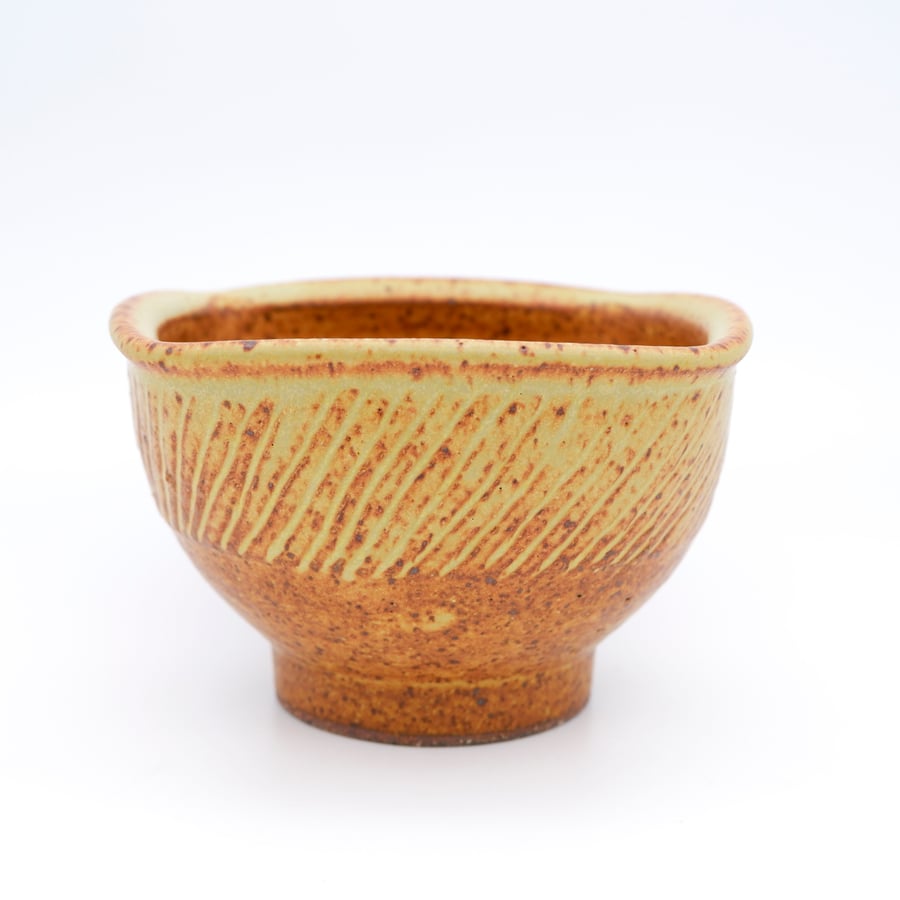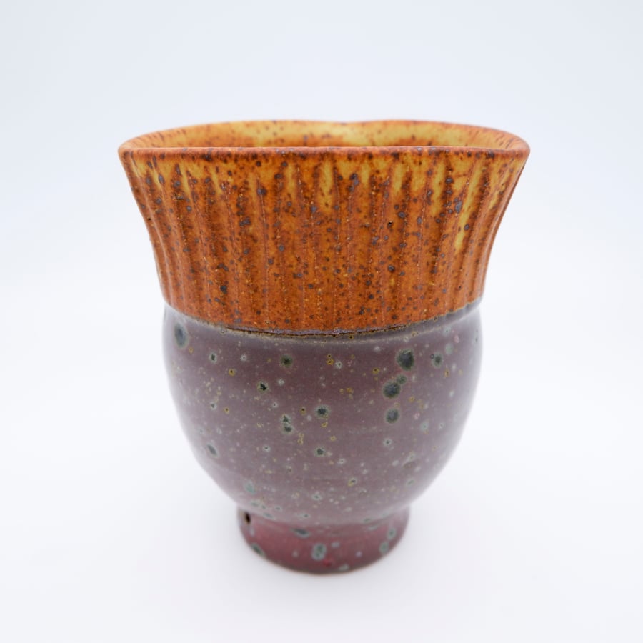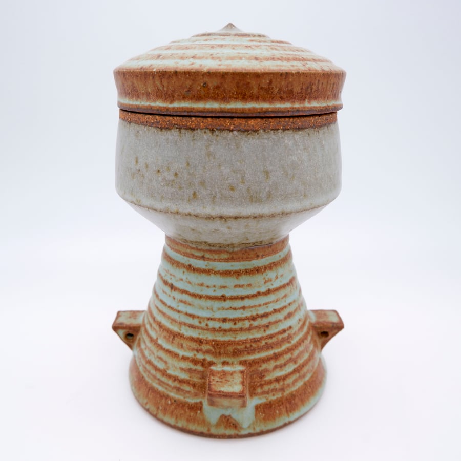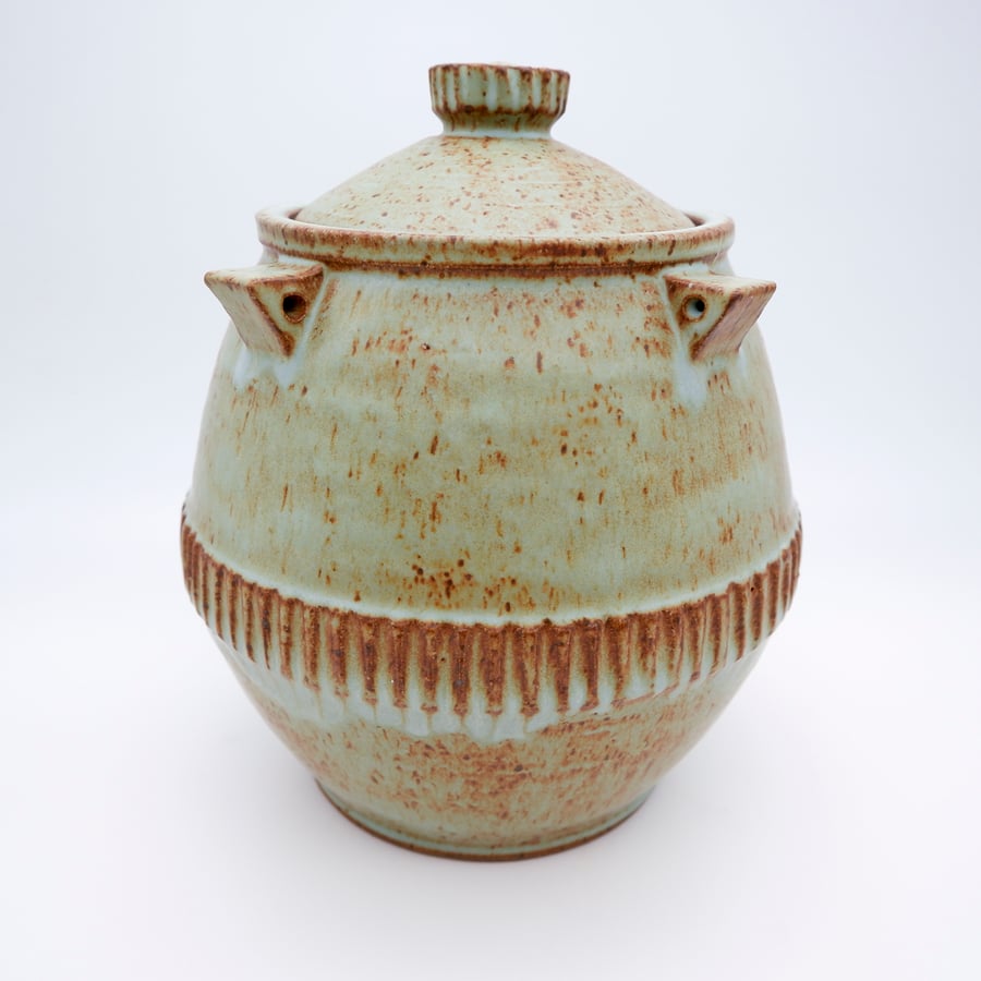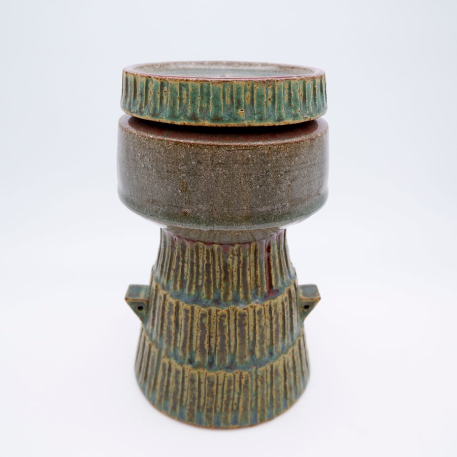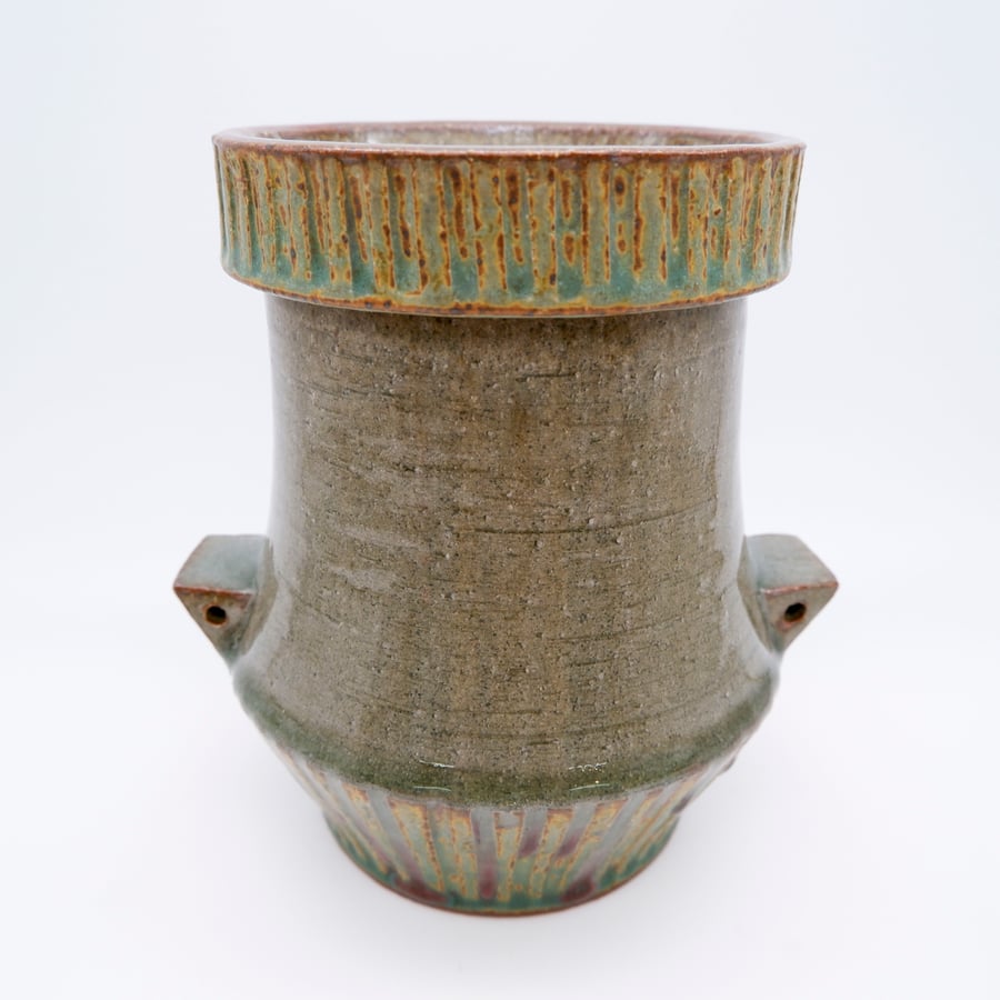 Made with custom iron rich stoneware, thrown, glazed and fired in a reduction atmosphere to 2350 degrees.